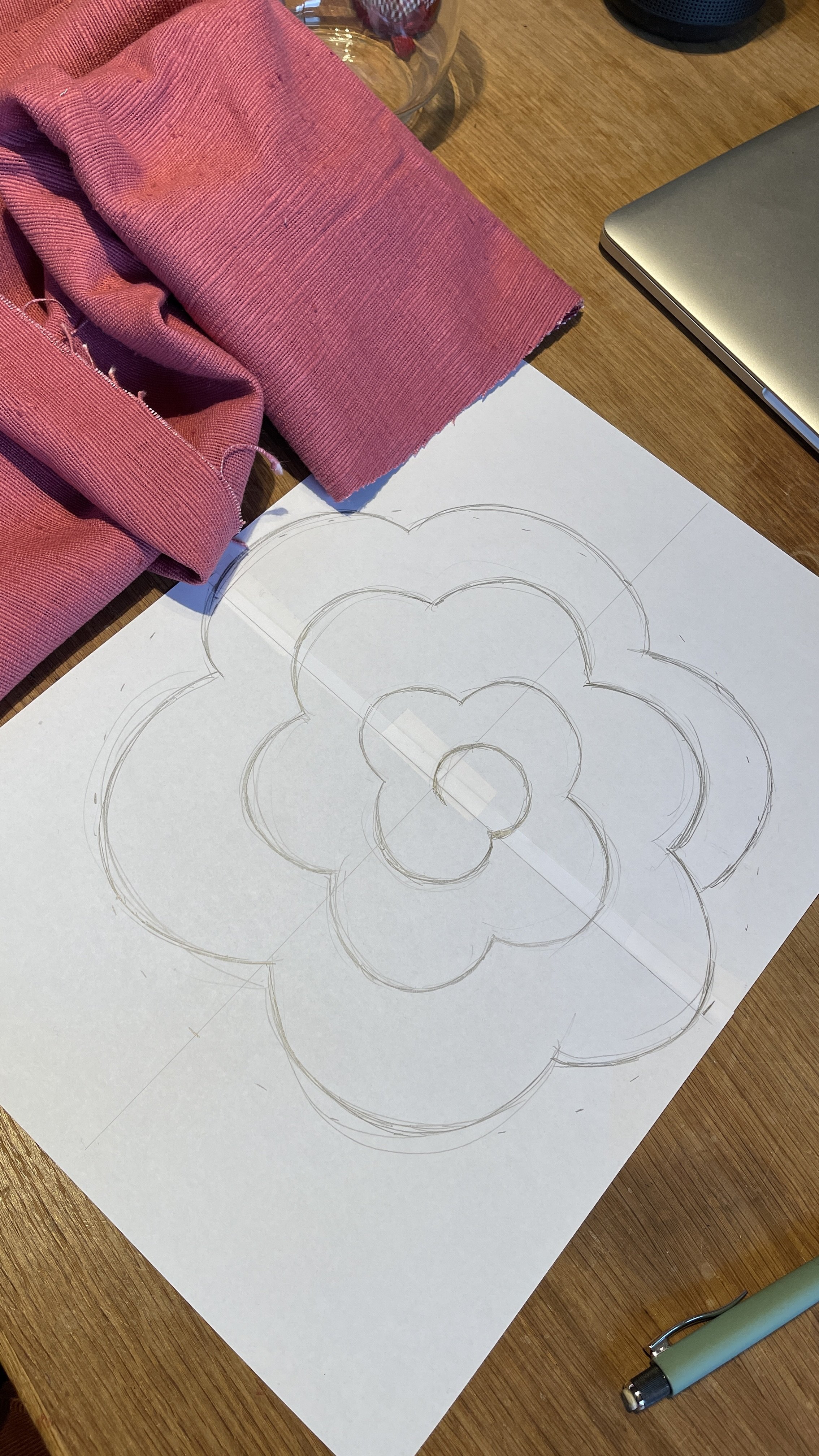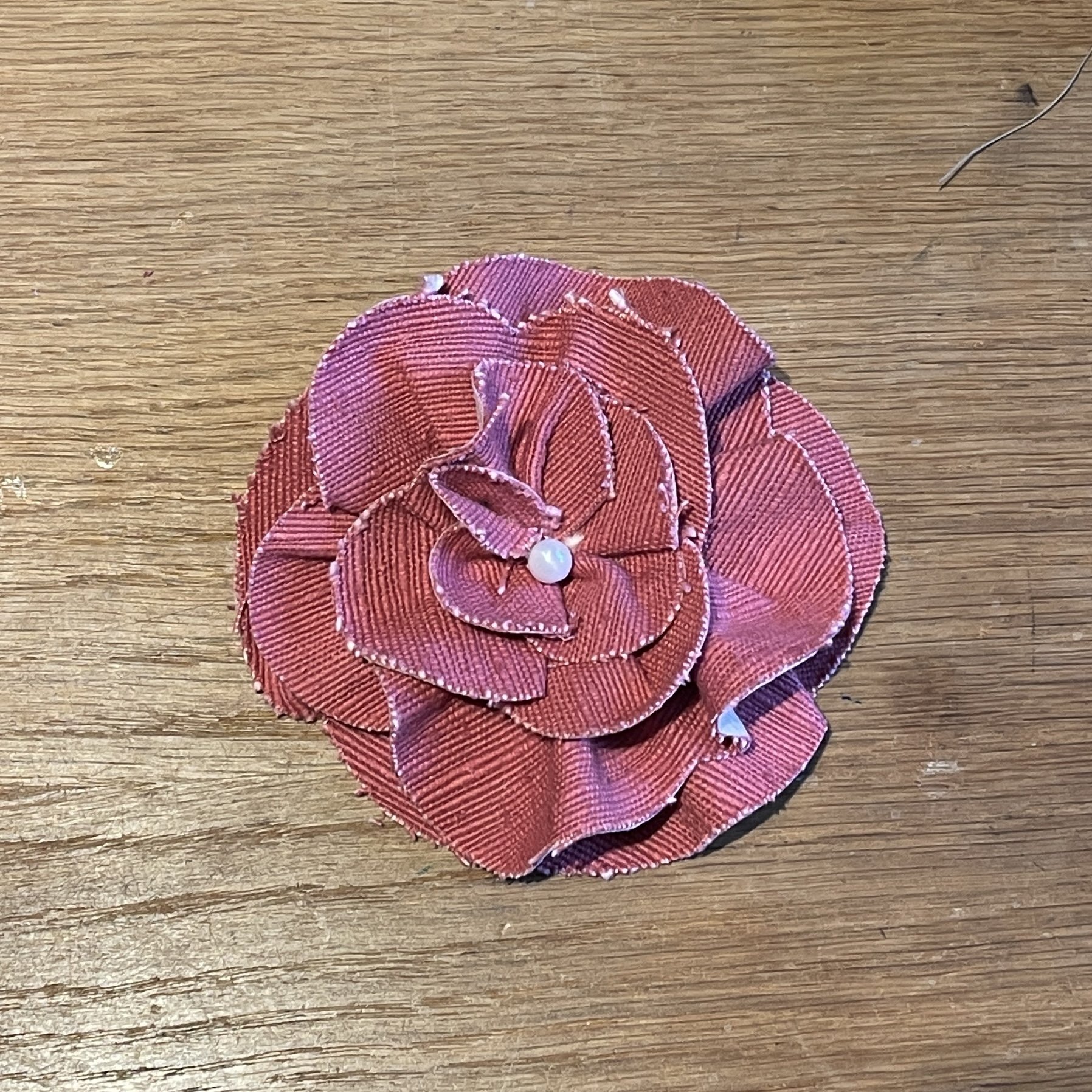 På arbejde har jeg kigget på at skulle lave en stof blomst (blandt andet). Så jeg fik lavet en krøllet cirkel spiral ting, der var 28 cm i diameter fladt.
